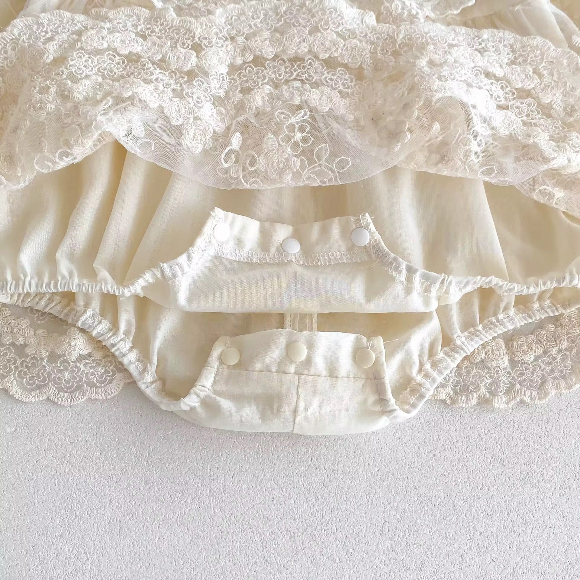 This beautiful white dress effortlessly combines elegance with delicate charm. With intricate lace detailing and soft ruffles along the collar, it’s designed to bring a touch of grace to any occasion. The delicate fabric and soft color make it ideal for both everyday wear and special moments, ensuring your little one is both stylish and comfortable.